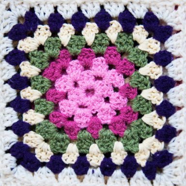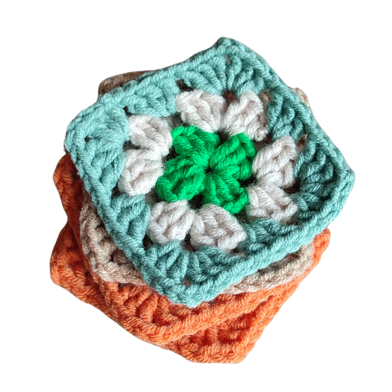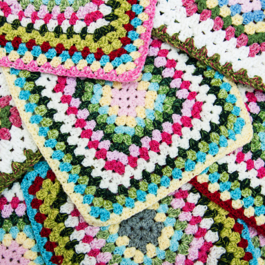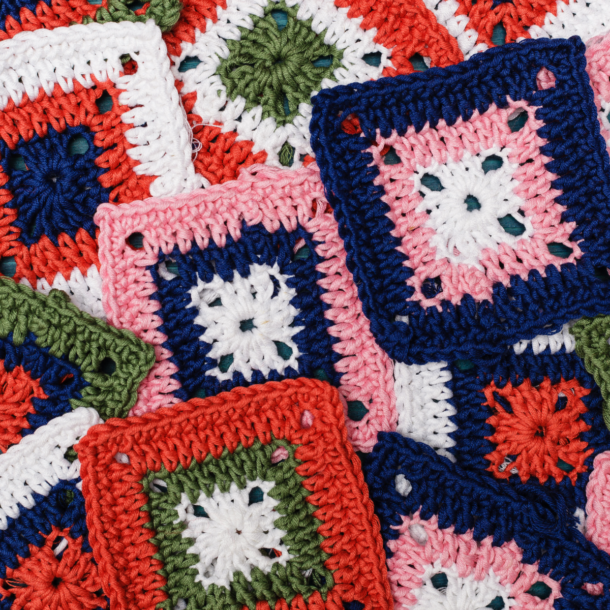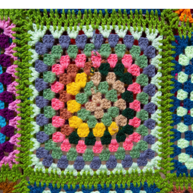 Haak een vierkantje van 20 × 20 cm. Kies zelf de mooiste kleuren. Gebruik je eigen restgaren of haal gratis wol op bij een inzamelpunt.